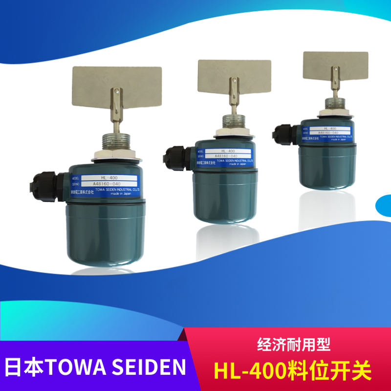 日本東和制電株式會社生產的HL-400系列,HL-400為阻旋式小料位開關標準型,螺紋式安裝,三種長度可選(85mm、100mm、135mm),其獨特的密封,精工制作,近60年的生產料位開關經驗,應用廣泛。