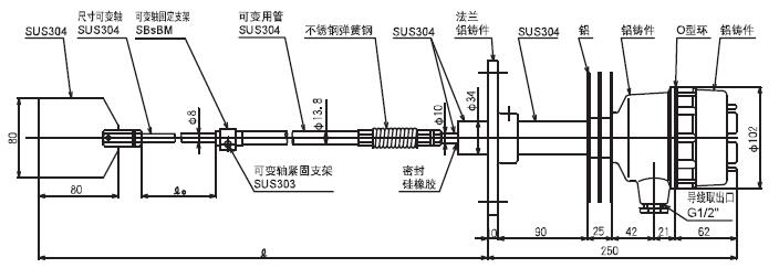 PRL-200EB / PRL-200ED 只要擰松軸上的螺母,就可以在規(guī)格范圍內(nèi)任意變更其長(zhǎng)度。可耐熱200℃,垂直安裝用。