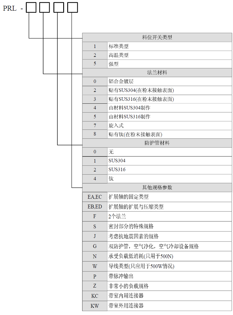 PRL-100型為PRL-100系列阻旋式料位開關中的標準型號。