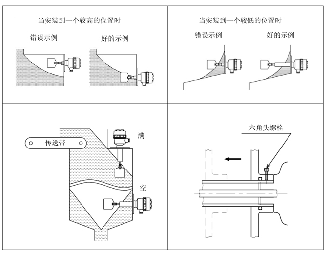 如果將阻旋式料位開關安裝在喂料口的正下方時,在粉末顆粒或者是料斗內形成的“橋‘’崩塌的影響下,會損壞料位開關,這時應當更換安裝位置,或者為產品提供一個防護板。